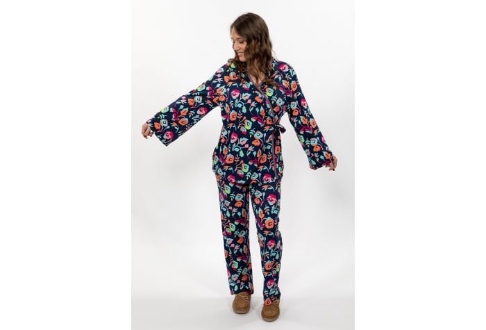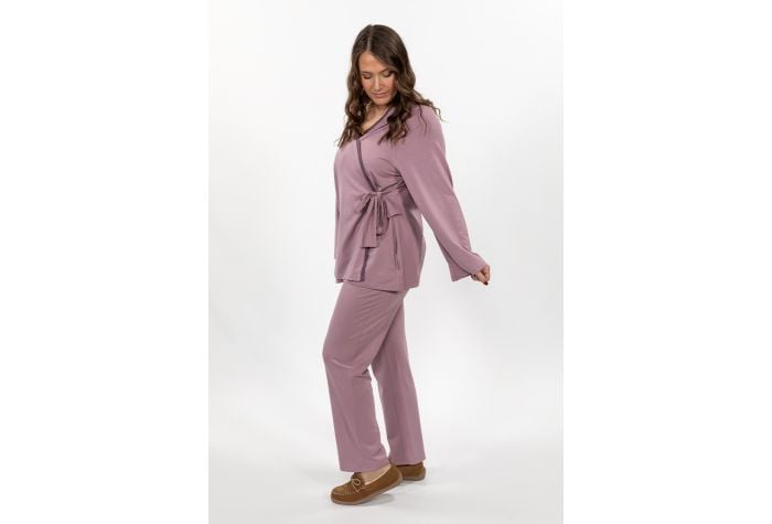 - This set features a wrap front with generous ties